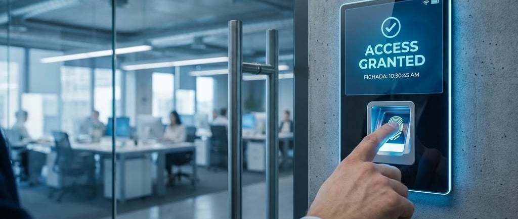 Para PyMES y comercios con gran planta de personal, reemplazamos el control manual por sistemas biométricos de fichada. Esto permite a RRHH y gerencia auditar con precisión horarios de ingreso, egreso y horas extra, eliminando errores.