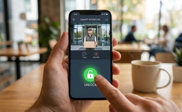 Atendé la puerta de tu edificio o empresa desde el celular, estés donde estés. Mirá quién toca, hablá y abrí la puerta a distancia con total seguridad.