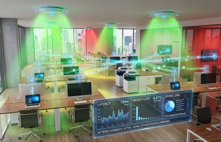 Lo que no se mide, no se mejora. Visitamos tu espacio (hogar, edificio o local) y realizamos un escaneo de espectro para detectar interferencias, zonas muertas y cuellos de botella reales en tu conexión actual.